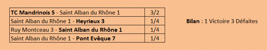 L'équipe 17/18 ans évoluait cette année en poule A division 3 du championnat de l'Isère. Beau parcours pour Axel et Fabio qui terminent en tête de la poule (résultats de poule fournis ci-contre). Ils s'inclinent ensuite de justesse 2/1 en 1/8 de finale contre l'équipe de Beaucroissant Izeaux qui possédait pourtant des classements supérieurs.